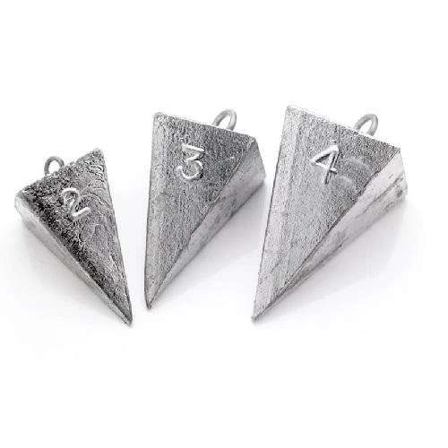Piramide lood met dak. Goed te gebruiken op het strand als het te hard stroomt om met normaal lood te vissen.