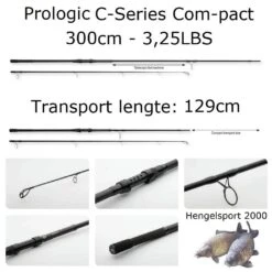 De Prologic C-Series Com-pact Range bestaat uit ontzettend compacte hengels die zijn voorzien van een inschuifbaar onderstuk. Hierdoor zijn deze hengels een stuk compacter te vervoeren ten opzichte van andere 8ft – 9ft of 10ft hengels. De hengels hebben een mooie topactie en een goede ruggengraat in de blank voor optimaal drilplezier! Door de korte transportlengte zijn deze erg geliefd voor de struinende vissers of vissers die veel vissen met of vanuit de boot. Wij kunnen uit persoonlijke ervaring spreken dat wanneer je eenmaal een Prologic C-Series Com-pact hengel hebt aangeschaft, je niet meer ander wil!