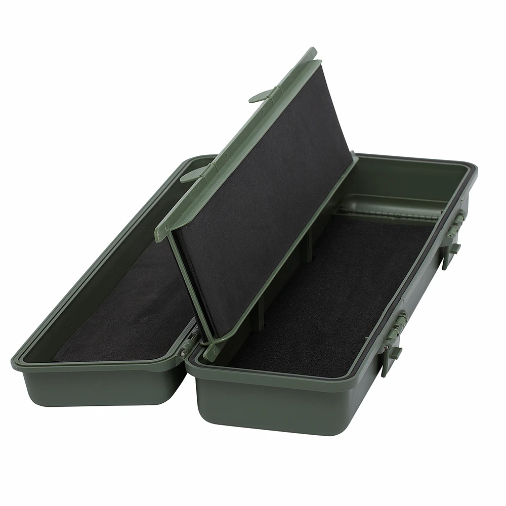Ultiem opbergsysteem voor alle typen karper onderlijnen. De Prologic Cruzade Rig Box heeft een enorme opslagcapaciteit en zelfs een dubbel scharnierend middenstuk om lange onderlijnen omheen te wikkelen.