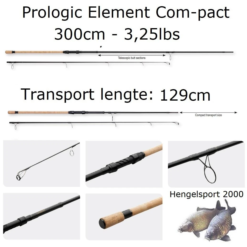 De Prologic Element Com-pact Range bestaat uit ontzettend compacte hengels die zijn voorzien van een inschuifbaar onderstuk. Hierdoor zijn deze hengels een stuk compacter te vervoeren ten opzichte van andere 8ft – 9ft of 10ft hengels. De hengels hebben een mooie topactie en een goede ruggengraat in de blank voor optimaal drilplezier! Door de korte transportlengte zijn deze erg geliefd voor de struinende vissers of vissers die veel vissen met of vanuit de boot. Wij kunnen uit persoonlijke ervaring spreken dat wanneer je eenmaal een Prologic Com-pact hengel hebt aangeschaft, je niet meer ander wil!