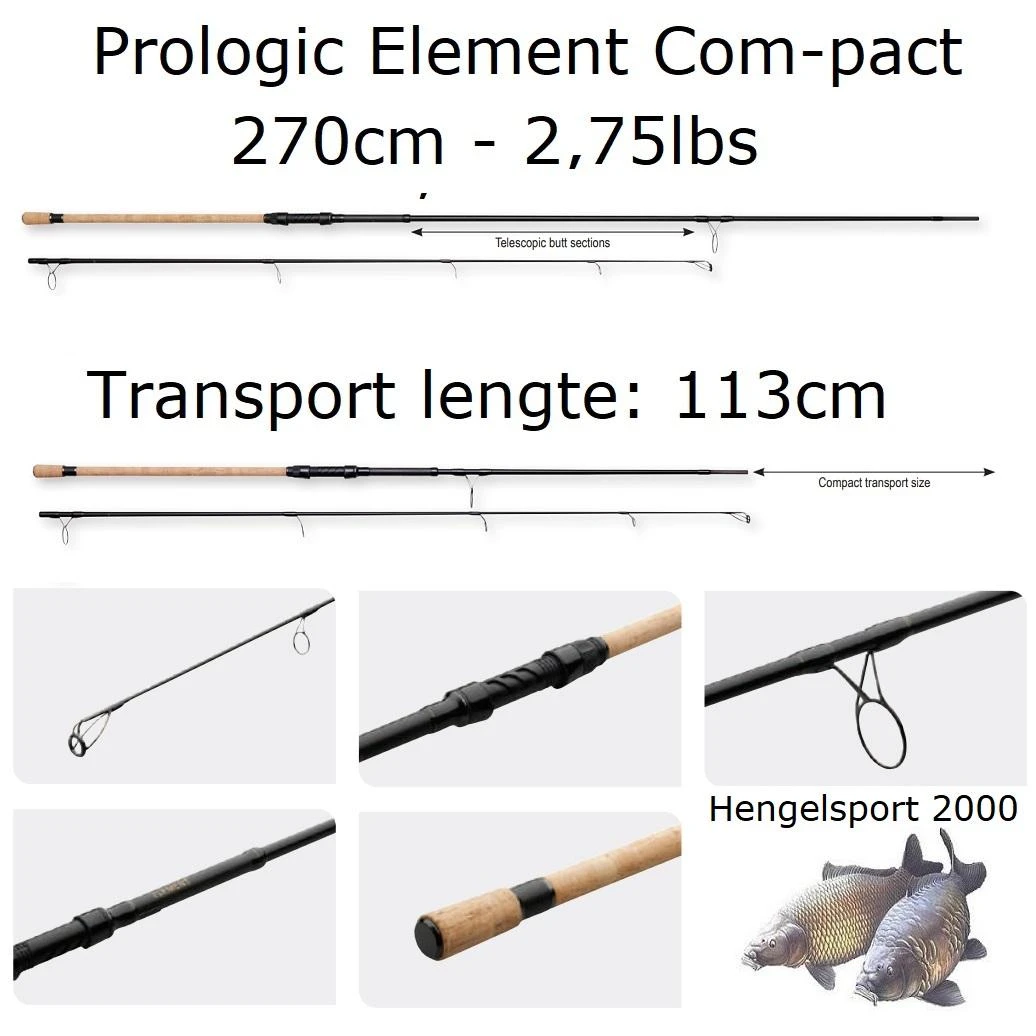 De Prologic Element Com-pact Range bestaat uit ontzettend compacte hengels die zijn voorzien van een inschuifbaar onderstuk. Hierdoor zijn deze hengels een stuk compacter te vervoeren ten opzichte van andere 8ft – 9ft of 10ft hengels. De hengels hebben een mooie topactie en een goede ruggengraat in de blank voor optimaal drilplezier! Door de korte transportlengte zijn deze erg geliefd voor de struinende vissers of vissers die veel vissen met of vanuit de boot. Wij kunnen uit persoonlijke ervaring spreken dat wanneer je eenmaal een Prologic Com-pact hengel hebt aangeschaft, je niet meer ander wil!