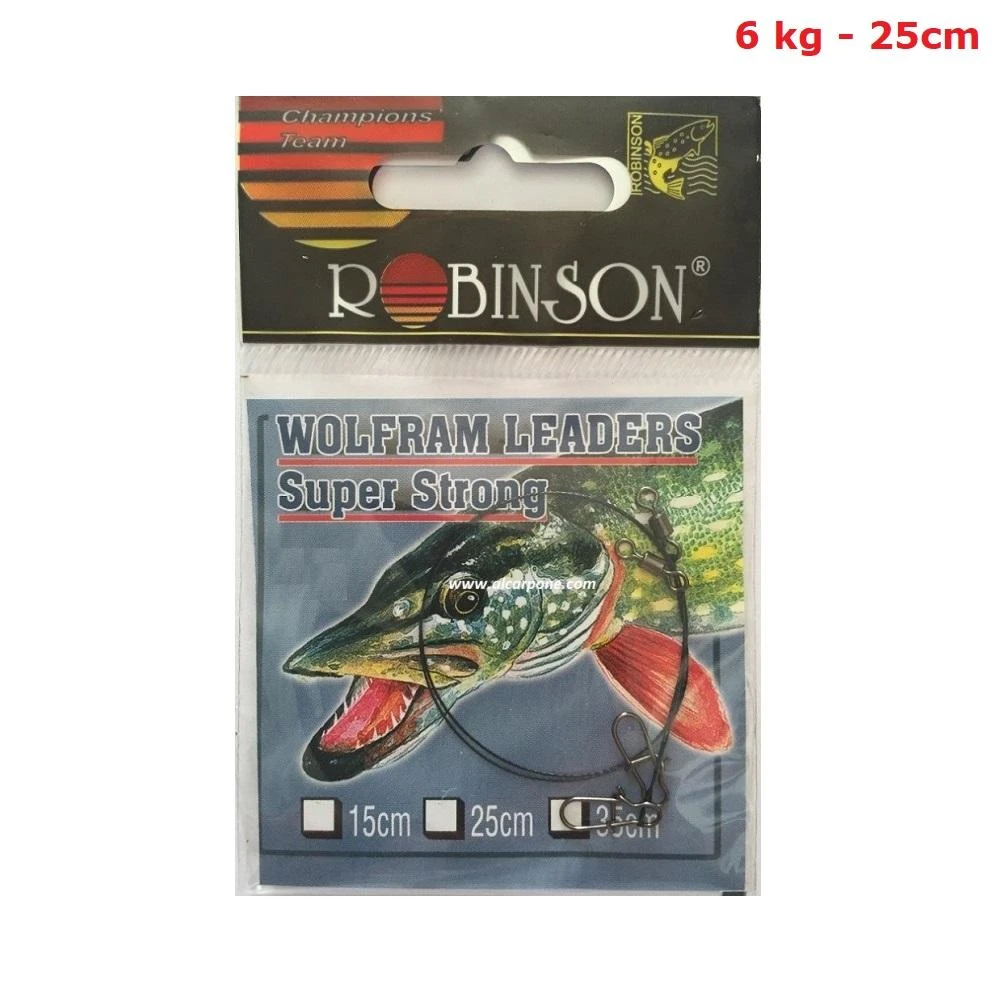 Een goede, sterke leader is onmisbaar als je op snoek jaagt.Wolfram Leaders zijn gemaakt van hoogwaardig wolfraam met nikkelen swivels en streken snaps. Wolfraam is uitermate geschikt voor het maken van leaders omdat het ongelooflijk flexibel is en toch duurzaam is, wat het een voordeel geeft ten opzichte van leaders die van andere materialen gemaakt zijn. Hiermee kun je zelfs de meest agressieve snoek veilig binnenhalen!