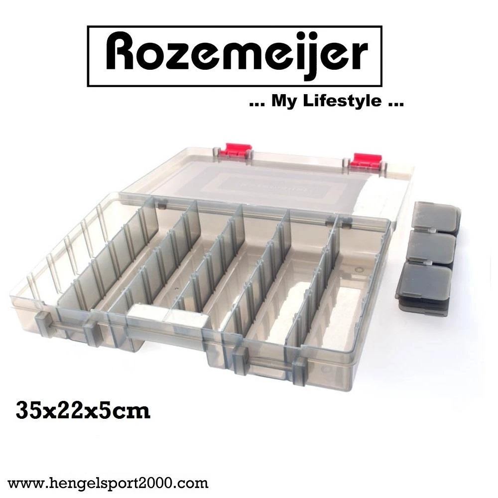 De Rozemeijer Tackle Tainers behoeven geen introductie. Al jaren voert Rozemeijer hoogwaardige kwaliteit Tackle boxes in de Tackle Tainers series. Deze S-series zijn de ondiepe versies. Door de donkere kleur wordt het UV licht gefilterd, zodat het kunstaas niet verbleekt. Uiteraard is de vak indeling naar eigen inzicht in te richten door middel van uitneembare schotjes. De Tackle Tainers zijn voorzien van uitstekende sluitingen en stevig kunststof.