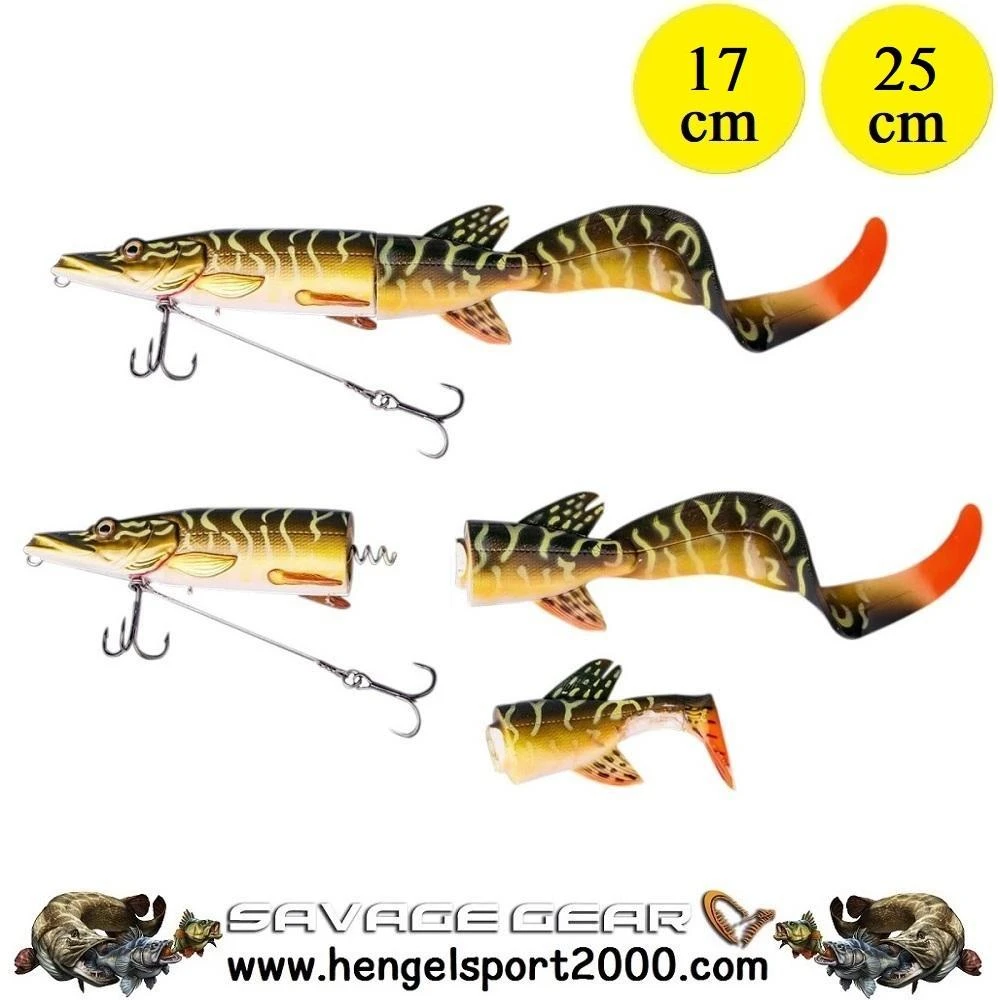 De 3D Hybrid Pike is een innovatief ontworpen hardbait kunstaas met een afneembare en verwisselbare zachte 3D-staart die snoeken in het bijzonder absoluut onweerstaanbaar vinden. Deze plug is gemaakt van digitale 3D-technologie van echte gescande gegevens en voorzien van een roestvrijstalen rig-systeem onder de buik, die zodra de snoek gehaakt is van het kunstaas weg zal gaan. De staart kan worden verwisseld om een ​​peddel staart of een krul staart via een kurkentrekker mechanisme te bevestigen. De peddel staart heeft een uitstekende, schommellende zwem actie met een verwijderbare rammelaar. De krul staart is ontworpen om het lichaam recht in het water te laten zwemmen, terwijl de staart provocerede en verleidelijke bewegingen maakt. De Savage Gear 3D hybride Pike combineert ongelooflijk veel details en design met fantastische beweging in het water dat zal zeker de aandacht van de grotere roofvis vangen!