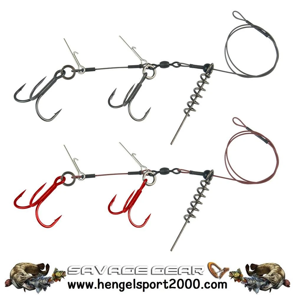 Deze rig monteert u door middel van de corkscrew in de kop van de shad te draaien, en de spikes prikt u in de onderkant van de shad. Bij een aanbeet schiet de montage los van de shad het zogenaamde Line Thru systeem. Hiermee voorkomt u dat de shad beschadigd raakt en de snoek het gewicht van de shad kan gebruiken om het kunstaas te lossen.